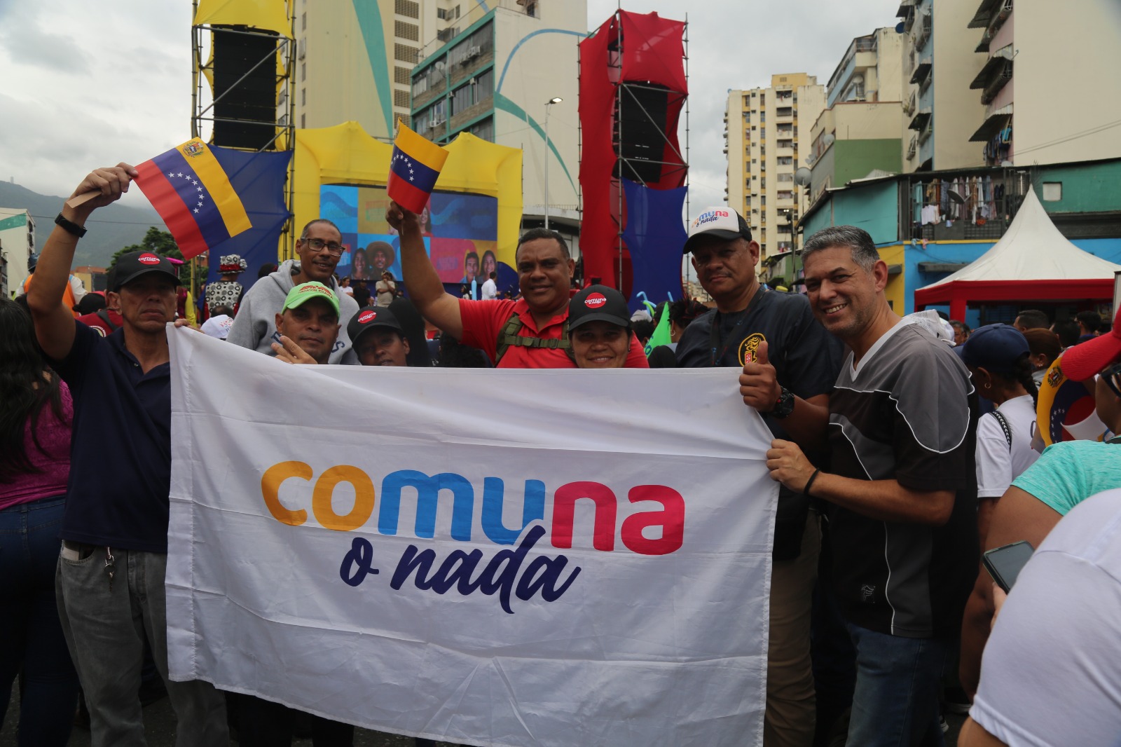 Desde la tarima principal, ubicada en la Avenida San Martín, los trabajadores mineros, se unieron a un gran número de personas, que escucharon atentos la presentación de los candidatos de los diferentes circuitos de la ciudad de Caracas.