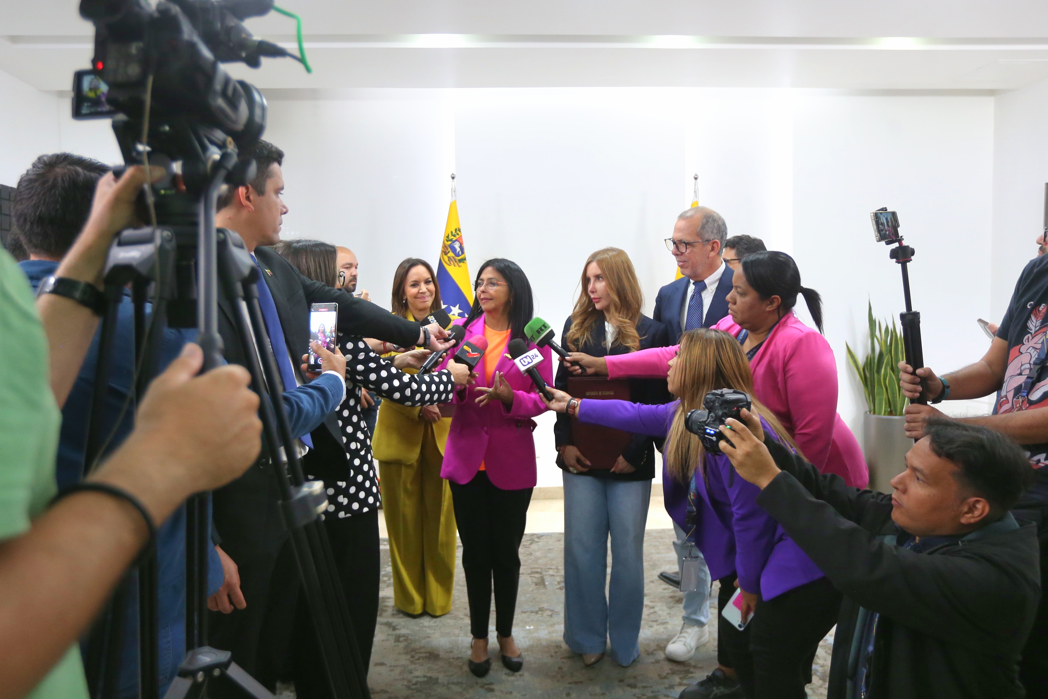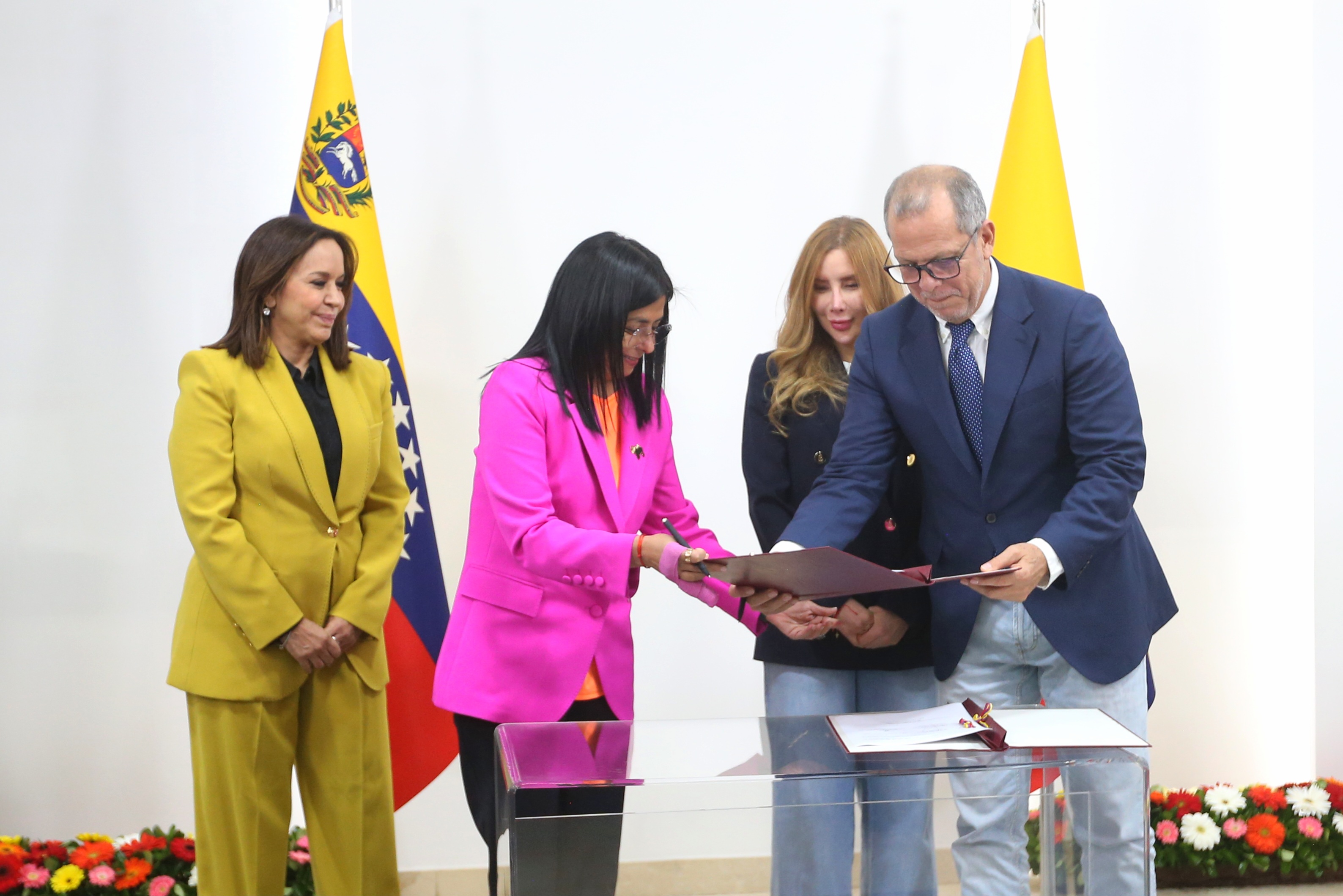 La vicepresidenta, Delcy Rodríguez, en representación de la República Bolivariana, expresó la felicidad y satisfacción de los dos países por sellar este acuerdo. «Esto ha sido un acuerdo del presidente Gustavo Petro y del presidente Nicolás Maduro, que han pensado en los pueblos de nuestras fronteras. Hoy estamos dando un paso histórico y estratégico, sentando las bases con este memorándum de entendimiento, para la creación de una zona binacional de paz, de unión de integración, de desarrollo económico y social”, expresó Rodríguez.