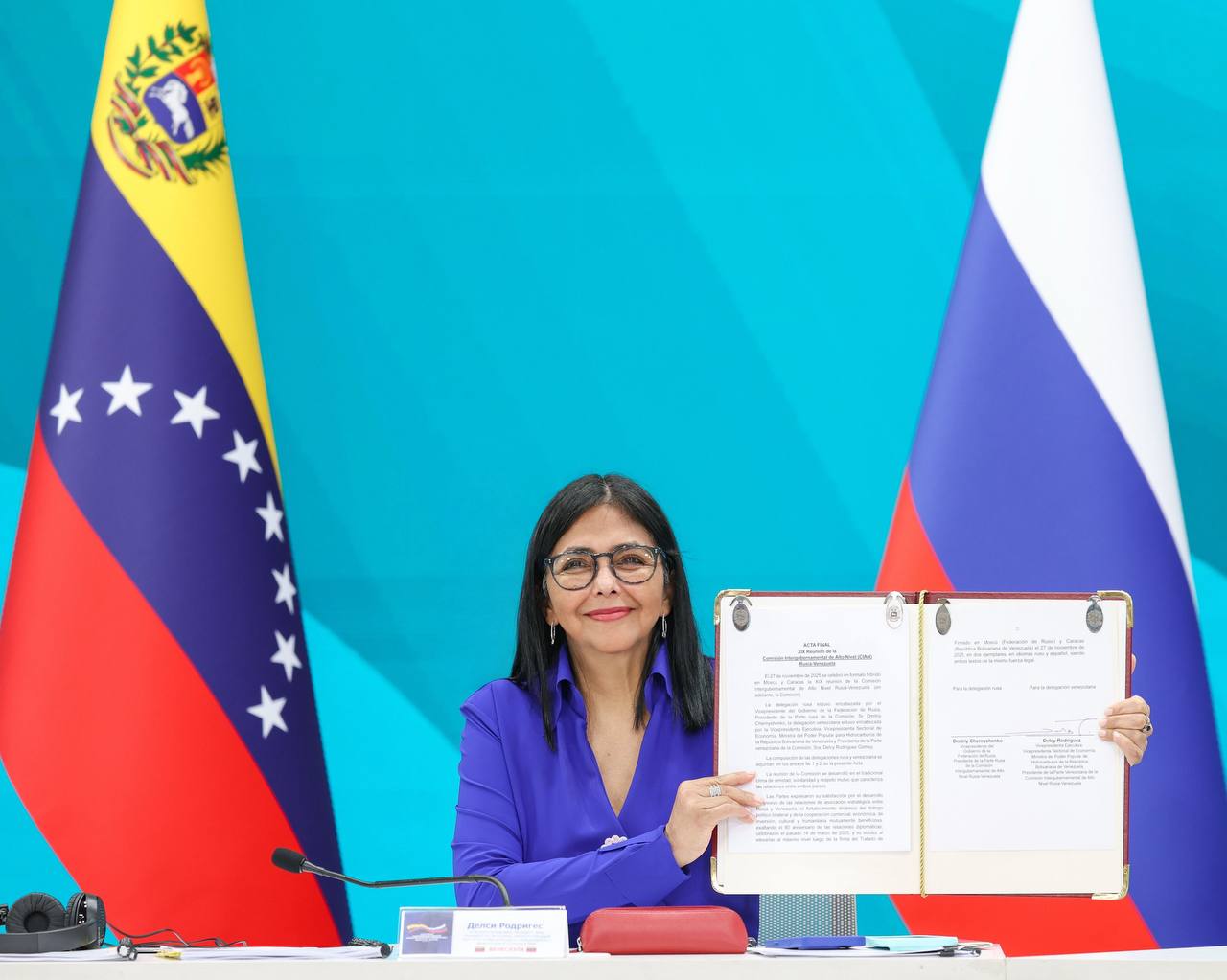 De igual manera, la vicepresidenta destacó que Rusia y Venezuela se ubican en el ámbito internacional levantando las banderas de la paz, la estabilidad, la cooperación, el comercio sano, del intercambio en el marco del derecho internacional.