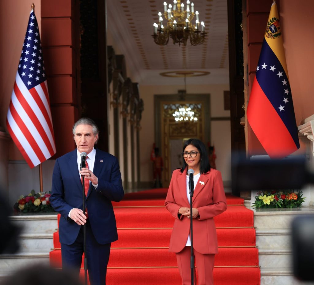 Prensa Minería.- La presidenta encargada, Delcy Rodríguez, sostuvo un encuentro con el secretario del Departamento de Interior de Estados Unidos y presidente del Consejo Nacional de Dominio Energético, Doug Burgum, con el objetivo de revisar la agenda de cooperación en materia minera entre ambas naciones.